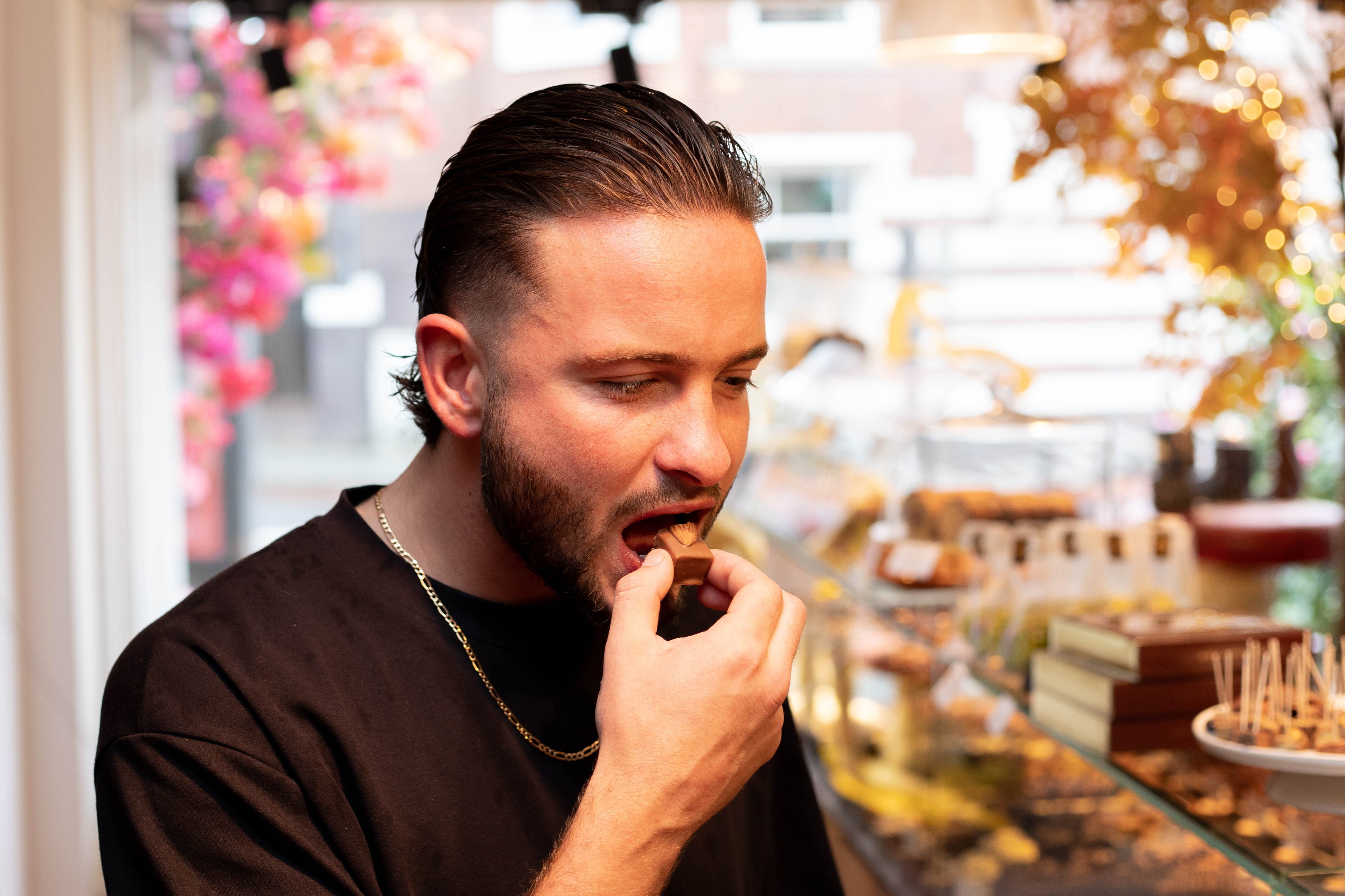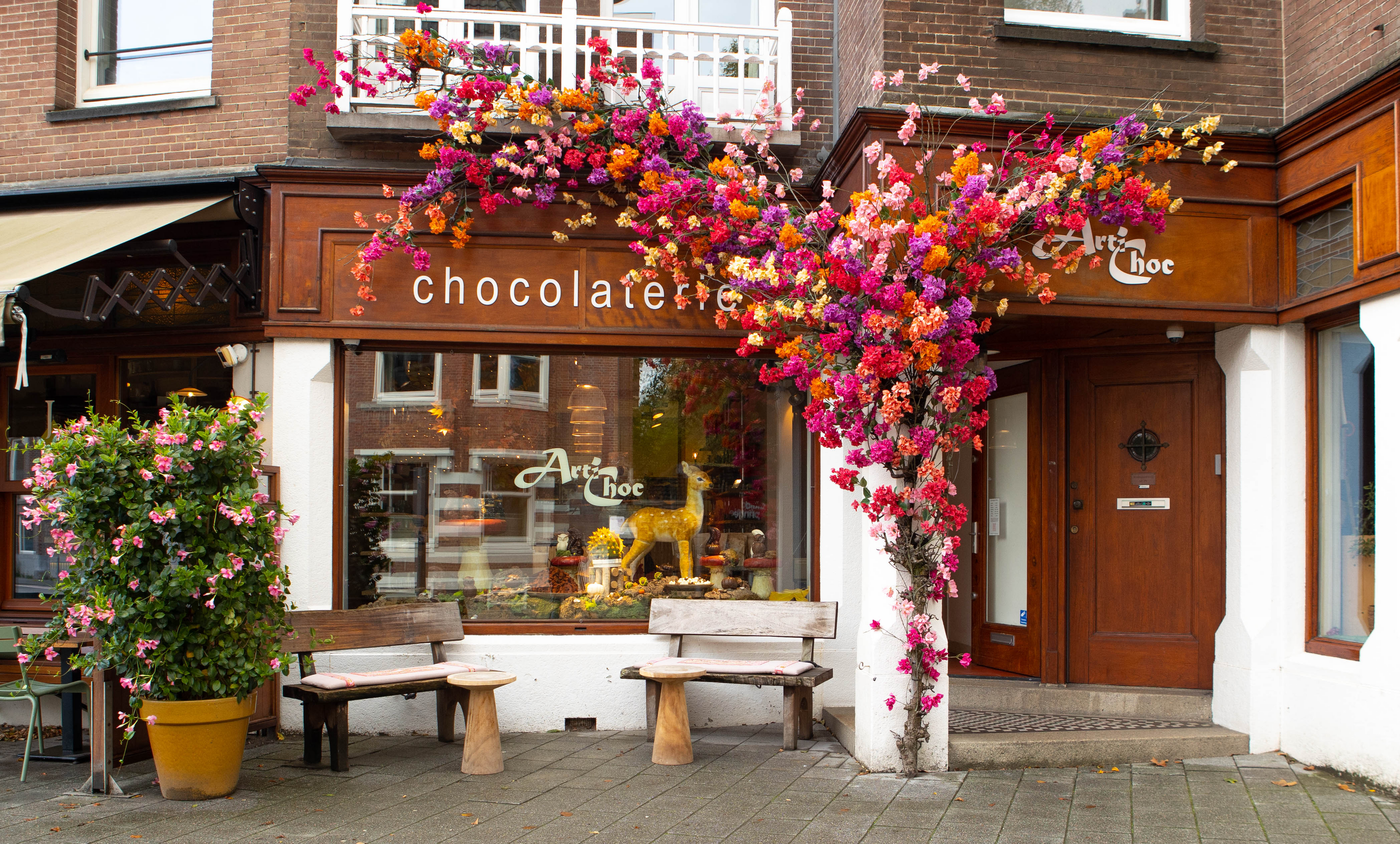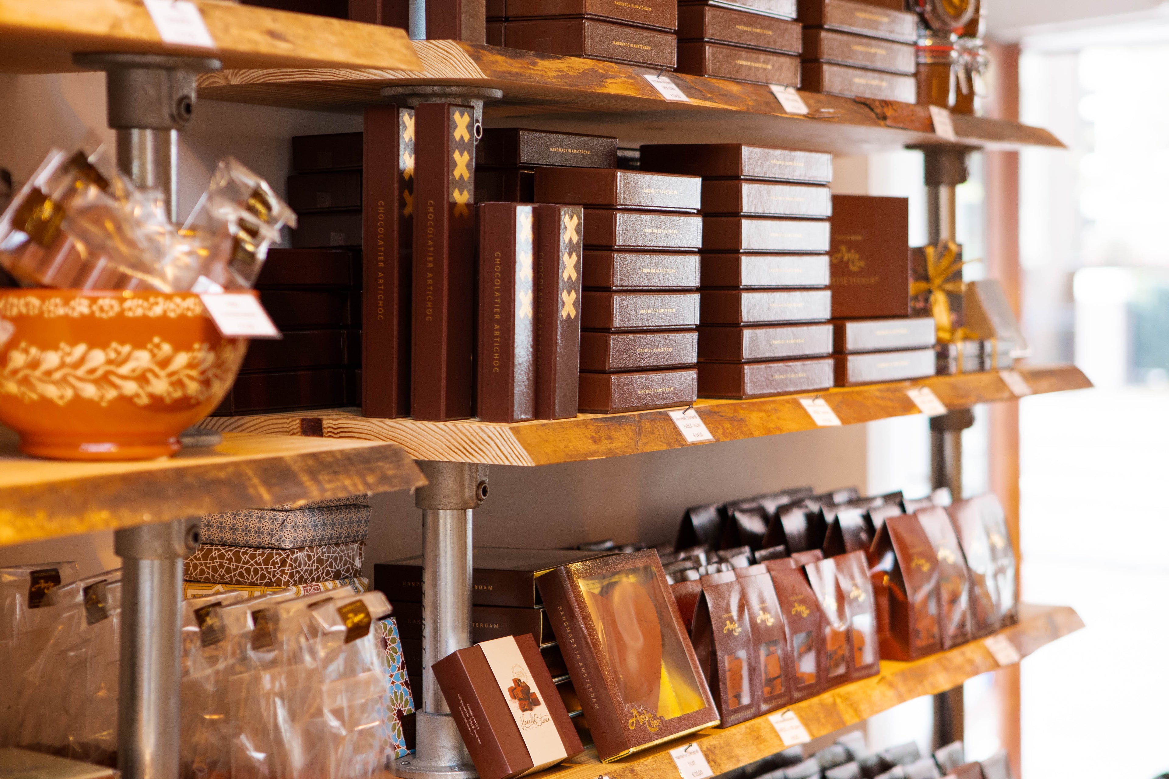 Kom gezellig langs bij onze winkel op de Koninginneweg 141 in amsterdam voor een heerlijke koffie, chocolade melk of een affogato met een bonbon.